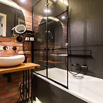 V koupelnách je vana a sprcha.